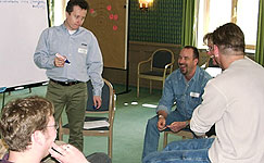 Teamprozess nennen wir einen sehr intensiven persönlichen Erfahrungsprozess, in dem die Teammitglieder jeder für sich individuelle Stärken und Schwächen erfahren, erkennen und mit sich vereinbaren lernen. Die „wahren“ Konfliktursachen - nicht die offensichtlich erscheinenden - werden gemeinsam behutsam aufgespürt und in einen Selbsterkenntnisprozess geführt. Dadurch kann echtes gegenseitiges Verstehen und eine offene zwischenmenschliche Begegnung stattfinden. Dies erzeugt auch auf der Sachebene Entspannung und Kreativität im Miteinander. Die Teammitglieder werden durch mehr Integrität selbstbewusster, da sie für Konfliktsituationen mehr Eigenverantwortung übernehmen und somit aus der situationsbezogenen Hilflosigkeit aussteigen und aktiver zum gemeinsamen Erfolg beitragen können. Das Ergebnis eines Teamprozesses sind klare Beziehungen und ein deutlich herzlicher Umgang untereinander. |